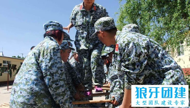 2、一位学员开始爬云梯,与此同时其他所有学员都参与搭建云梯,教练可安排一到两位学员做安全监督员。